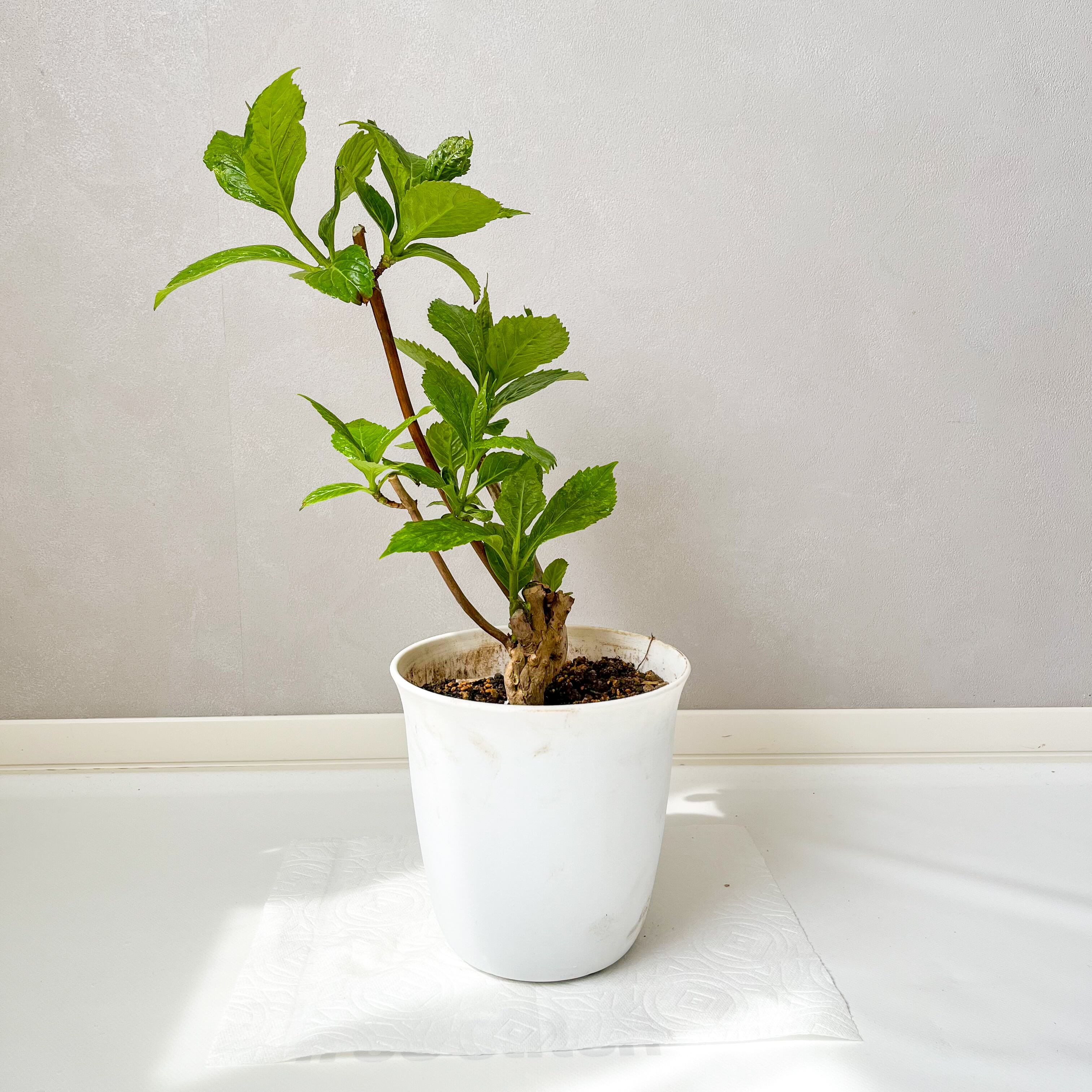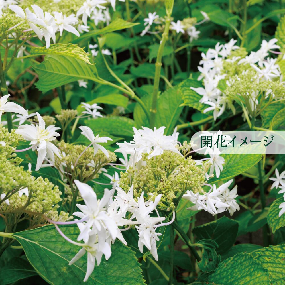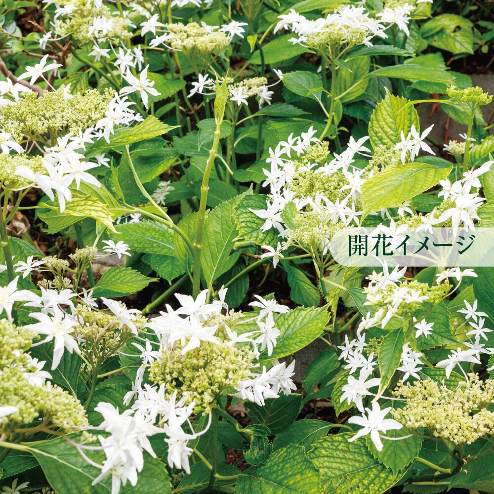 ガクアジサイの一種「八丈千鳥」の蕾付き中型株(樹高50cm~60cm)です。